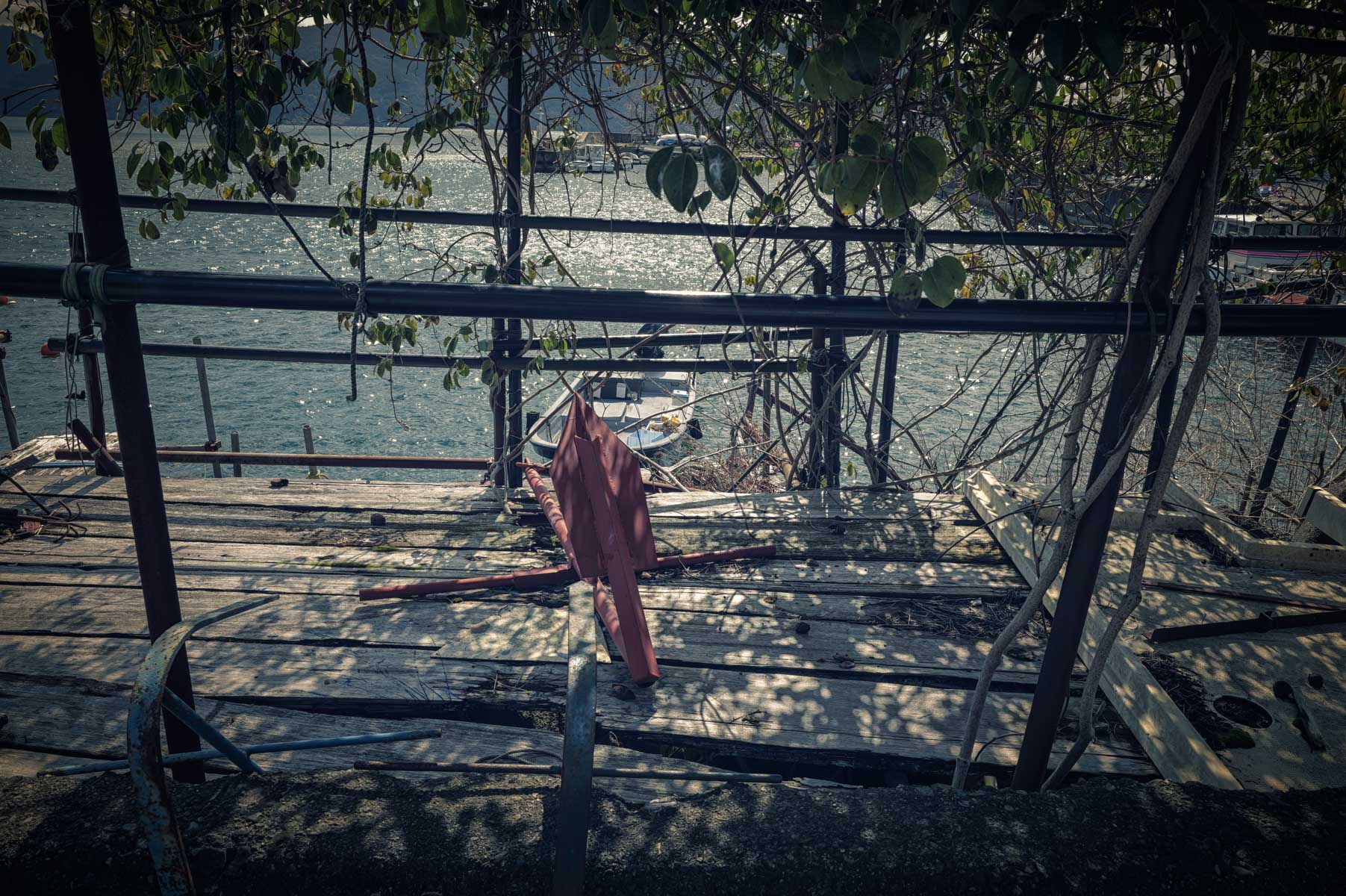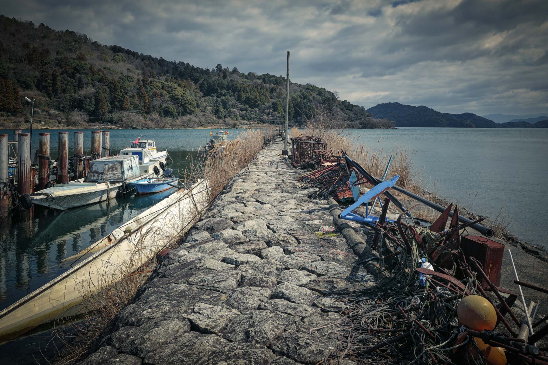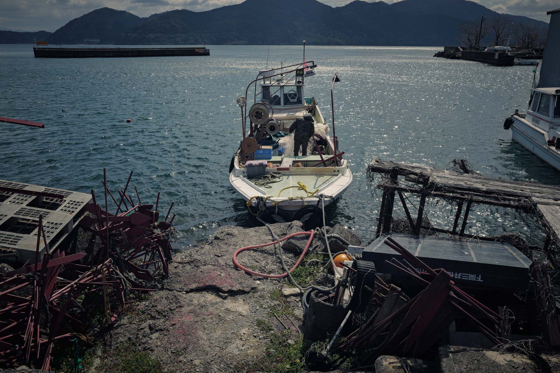 四方を水に囲まれた孤絶の中に、確かな生活の気配があった。係留された小舟、路地に佇む猫、どこかから漂う暮らしの匂い。漁業の島でありながら、これまで訪れてきた漁村とはどこか異なる空気が漂っていた。潮の香りがなく、波音も穏やかで、潮風に晒された荒々しさがない。海ではなく湖で生きてきた人々の暮らしは、同じ漁村でありながら、静けさの質がどこか違う。それは淡水という環境が、長い時間をかけてこの島の風景と人の気配に刻んできたものなのかもしれない。